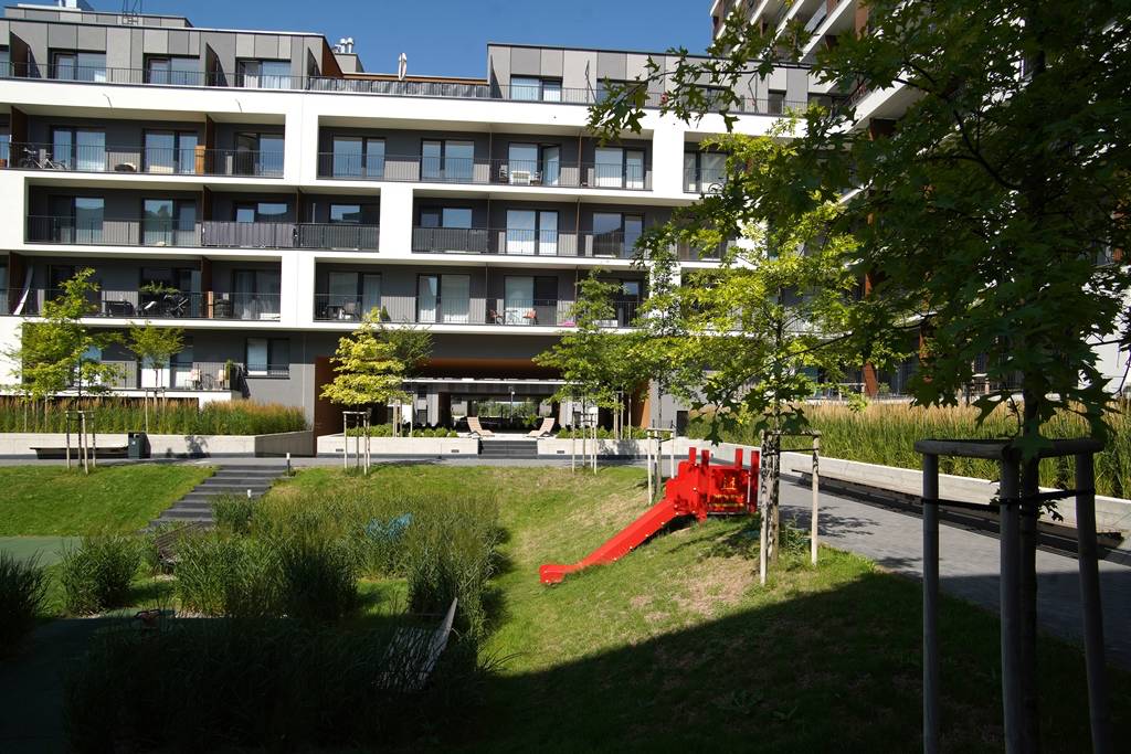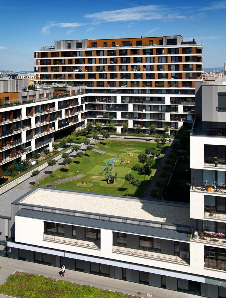 The construction area is located in cadastral area “Bratislava – Petržalka” south from Panónska cesta and north from new residential zone C1. Subject of planning permission includes six residential buildings (SO 01 – SO – 06). Buildings create semi-open block with inner park. The urban solution will protect residence from negative impacts of future constructions in the area of busy road “Panónska cesta” on the north.